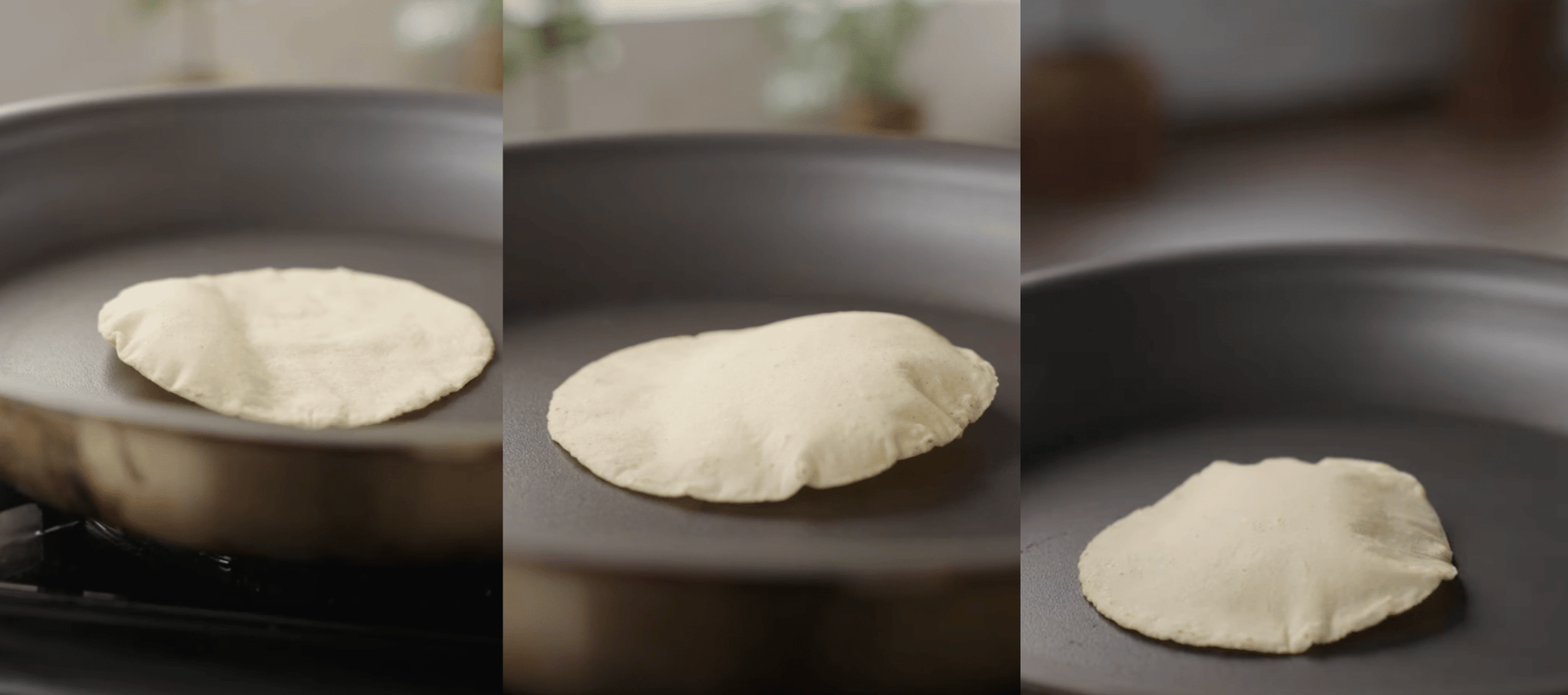 Si no utiliza una sartén antiadherente o un comal/plancha bien sazonados, la masa se adherirá a la superficie en lugar de soltarse y expandirse elegantemente hacia arriba y hacia fuera.