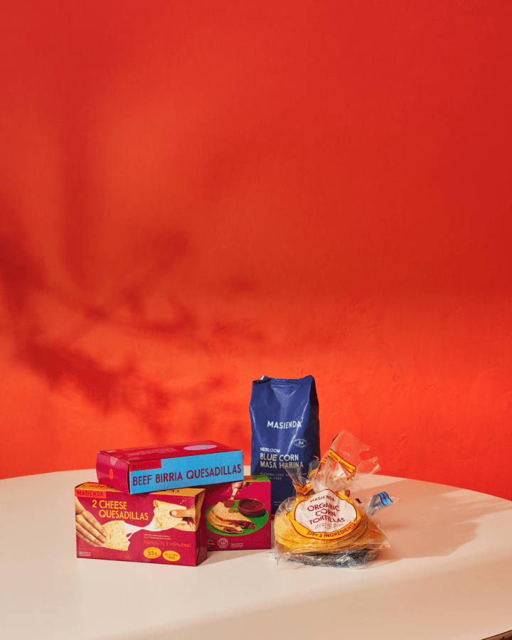 Hechas con tortillas de maíz no transgénico y queso Oaxaca de tercera generación de queseros mexicano-americanos, las Quesadillas Masienda vienen en tres estilos tradicionales: Queso Oaxaca, Birria de Res y Tinga de Pollo. Con hasta 33g de proteína por caja y todo el sabor de la comida callejera tradicional mexicana, son una comida nutritiva que puedes calentar y poner en la mesa en minutos. Encuéntralos en la sección de congelados de Whole Foods.