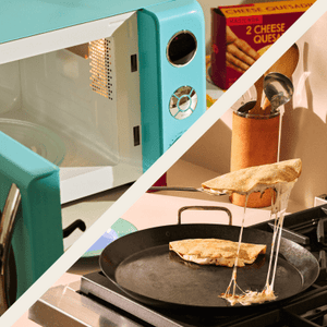Prueba a cocinar la quesadilla en el microondas durante sólo 60 segundos, luego dale la vuelta y cocínala durante los últimos 30 segundos. Si tu microondas es muy potente, puede que tengas que reducir el tiempo total de cocción. Si la cocinas en el horno, el trocito de queso que se desparrama y queda crujiente se conoce como costra y se considera un manjar. ¡Que aproveche!