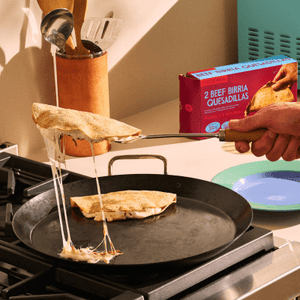 Nuestras nuevas quesadillas, hechas con auténtico queso oaxaqueño y tortillas de maíz no modificadas genéticamente, ya están disponibles en los supermercados Whole Foods Market de todo el país. Elige entre Queso Oaxaca, Birria de Res o Tinga de Pollo, y satisface tu antojo de un bocadillo o comida con alto contenido proteínico y calidad de restaurante que puedes disfrutar en casa. ¡Provecho!