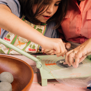 ¿Listo para que el olor a masa fresca y tortillas calientes llene tu cocina? Te presentamos nuestro Kit de inicio para tortillas, que incluye todo lo que necesitas: la robusta y elegante prensa para tortillas Masienda (una de las mejores elegidas de Epicurious, Saveur, Serious Eatsy America's Test Kitchen), dos bolsas de nuestra más vendida y sabrosa Masa Harina de Maíz Nativo, y un par de nuestros forros reutilizables personalizados para la prensa de tortillas que llevan impresa una regla para medir tortillas. Descubrirás que hacer tortillas en casa es sencillo, sorprendentemente rápido y muy satisfactorio.