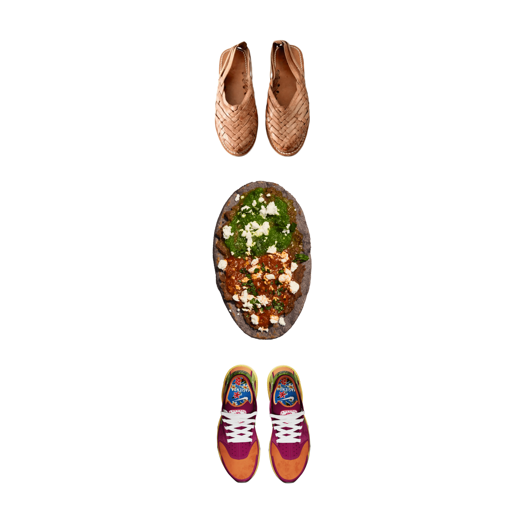 The word ‘huarache’ comes from the term ‘kwarachi’ for sandal in Purépecha, the language of the indigenous Purépecha people of Michoacán. Like blue jeans, huaraches come from humble origins (they were often worn by workers), but have been elevated to contemporary fashion mainstay, thanks to the enduring appeal of their supreme comfort and signature woven-leather design. But our feeling is that while lots of folks know the word ‘huarache’ thanks to Nike, they still don’t have a clue what a ‘real’ huarache is. And if they haven’t heard of the shoe, chances are they haven’t heard of the beloved masa-based dish that goes by the same name and looks like the sole of a work boot. (Despite looking like a shoe, it doesn’t taste like one — but you probably knew that.) So, our solve is to kill two birds with one stone shoe. Make a huarache Huarache and soon everyone will know about the leather sandal and the delicious, oblong, panza-filling street food. Mexico has long been a center of creativity when it comes to both food and fashion — it’s time it got its due.