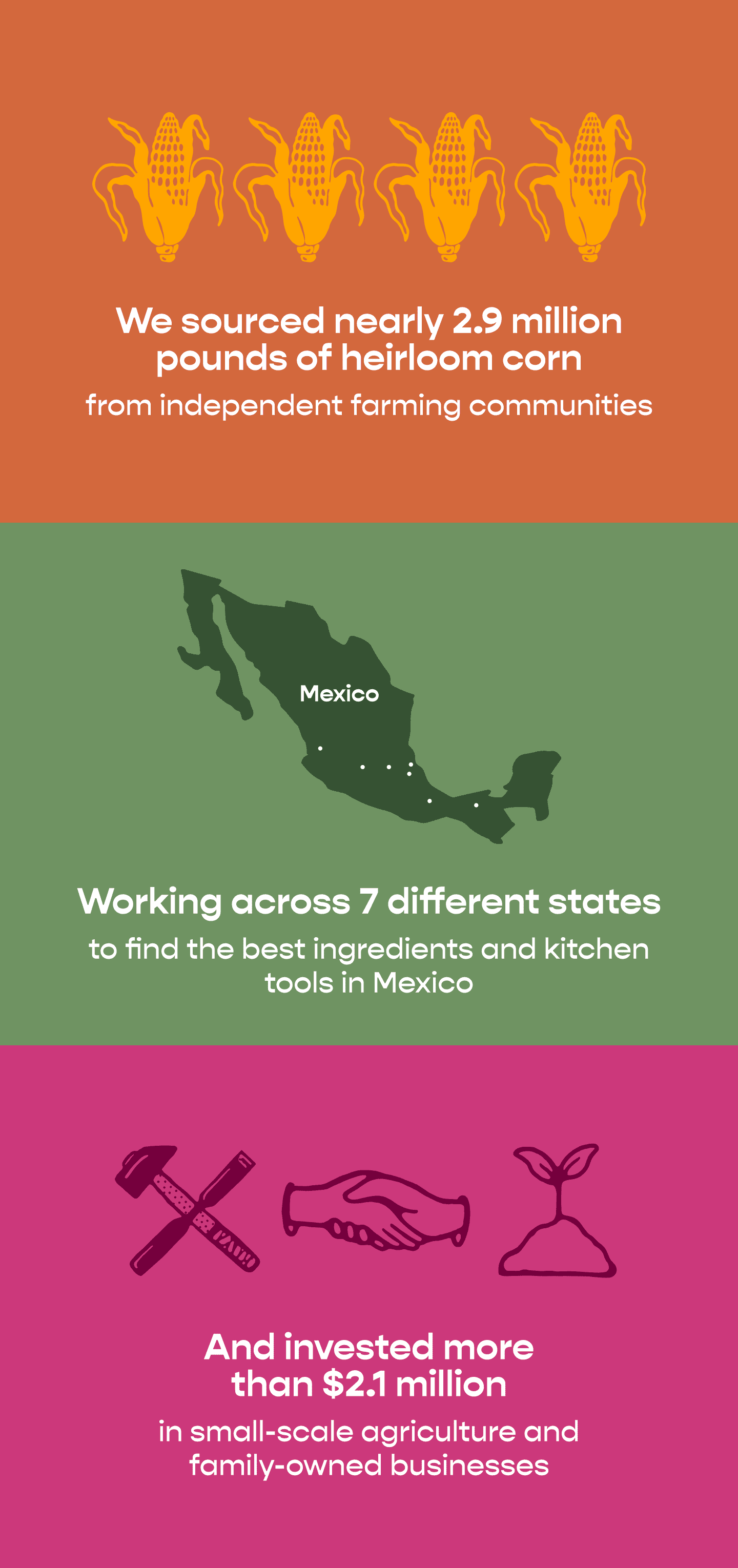In the coming year, we hope to increase our availability at retail stores and supermarkets near you, expand and diversify our supply chain, and, as that one commercial put it, bring masa to the masses.