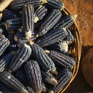 Rich in anthocyanins (the same antioxidants that make blueberries blue); tasting notes of earthy sweet corn, rich blue color.
